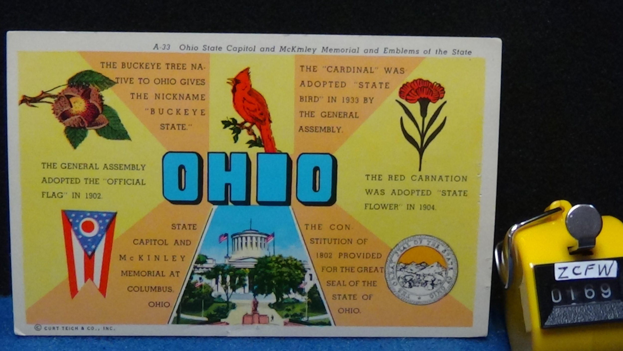 STD Vintage Ohio State Capitol Mckinley Memorial State Emblems Unposted Corner Bumps with paper separation, staple holes/pin holes left border and lower border