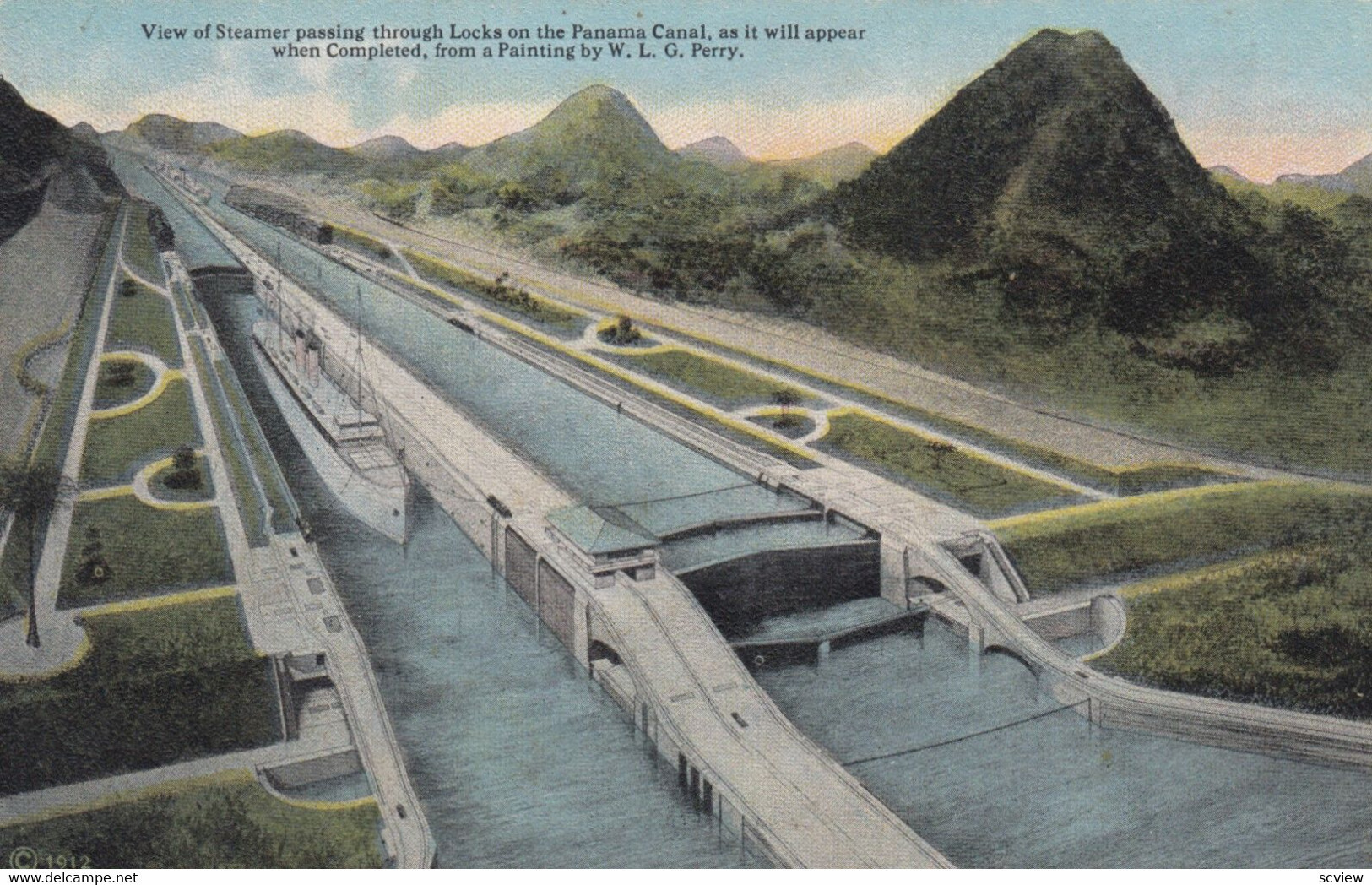 Steamer in Panama Canal Locks , 00-10s :: Postcard, 3.5 by 5.5 , Litho