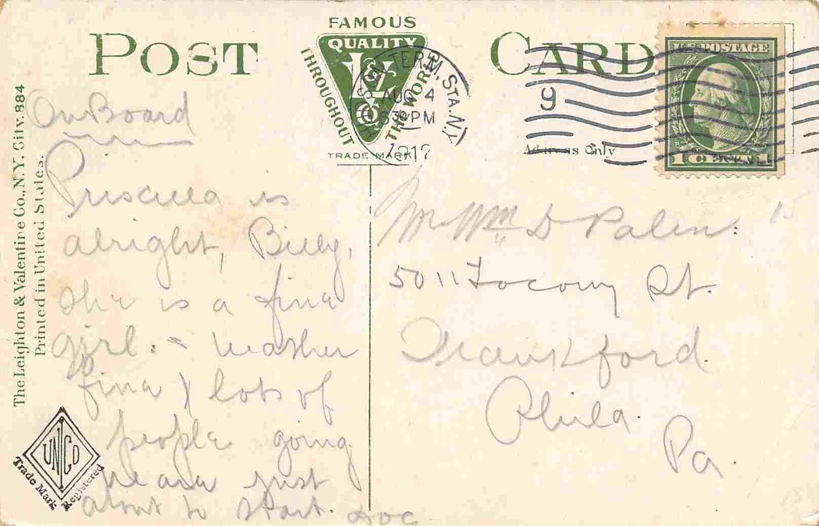 Steamer Priscilla Fall River Line Massachusetts 1912 postcard