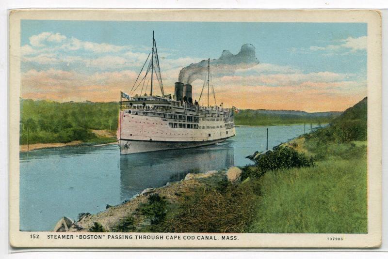 Steamer Ship Boston Cape Cod Canal Massachusetts 1920s postcard