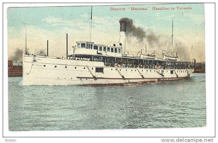 Steamer/Ship "Macassa," Hamilton To Toronto, Canada, PU-1909