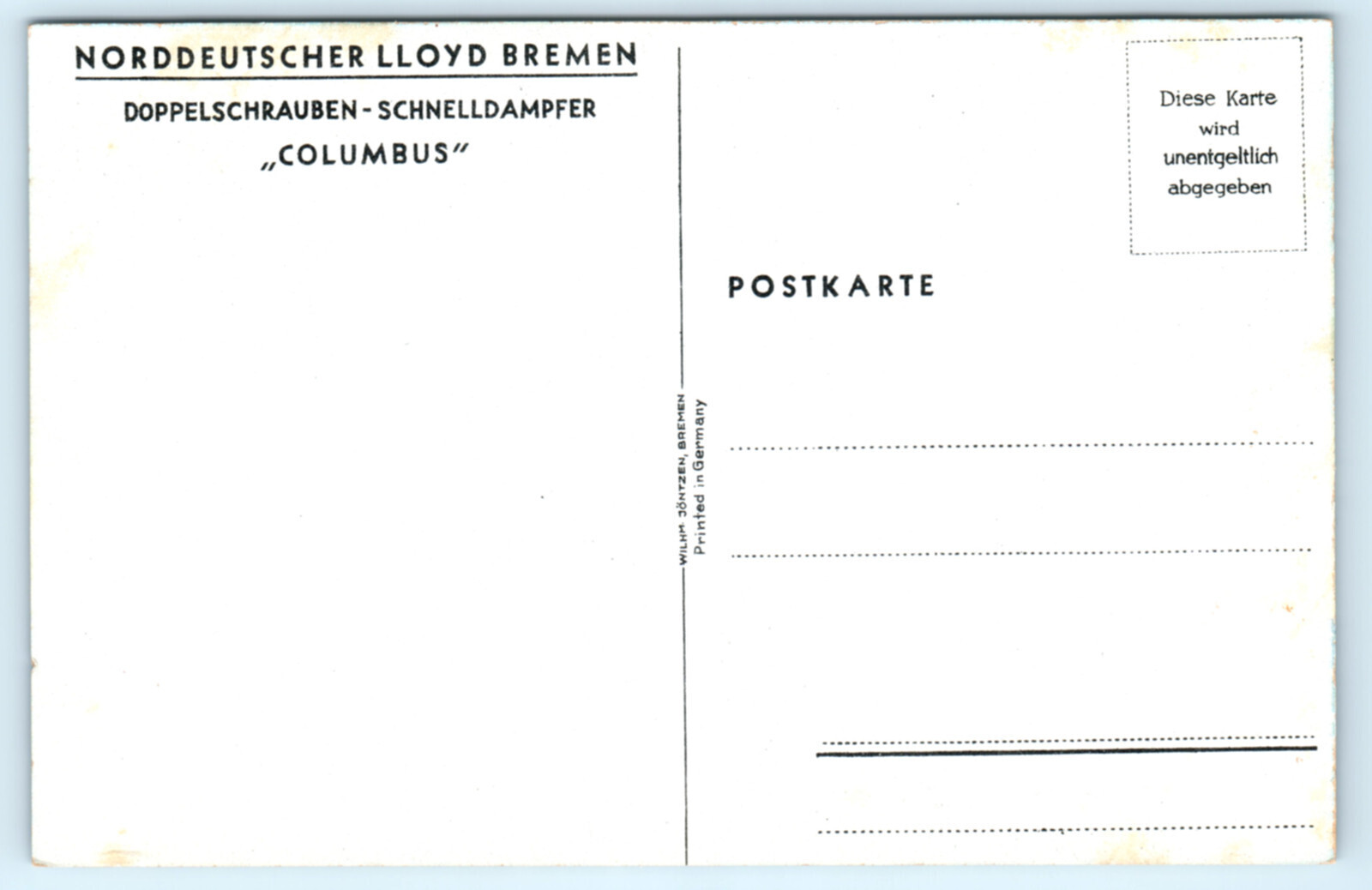 Steamship Columbus Steamer Ship Ocean Liner Postcard