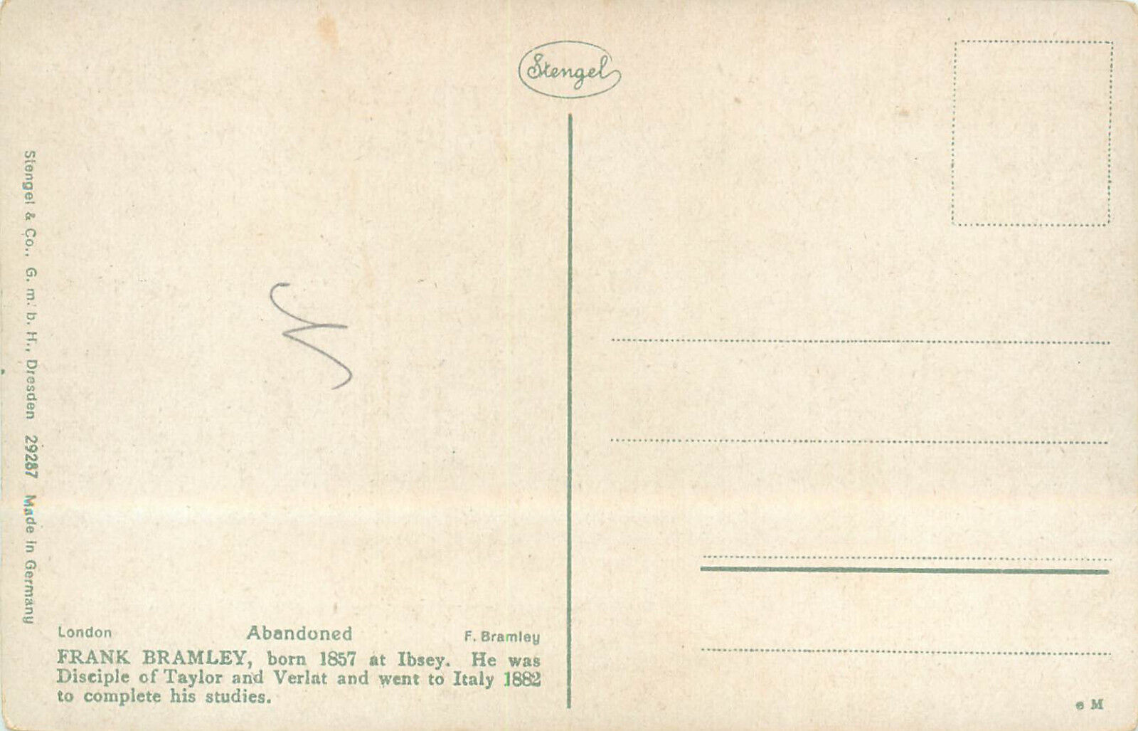 Stengel fine art postcard - Abandoned - Frank Bramley