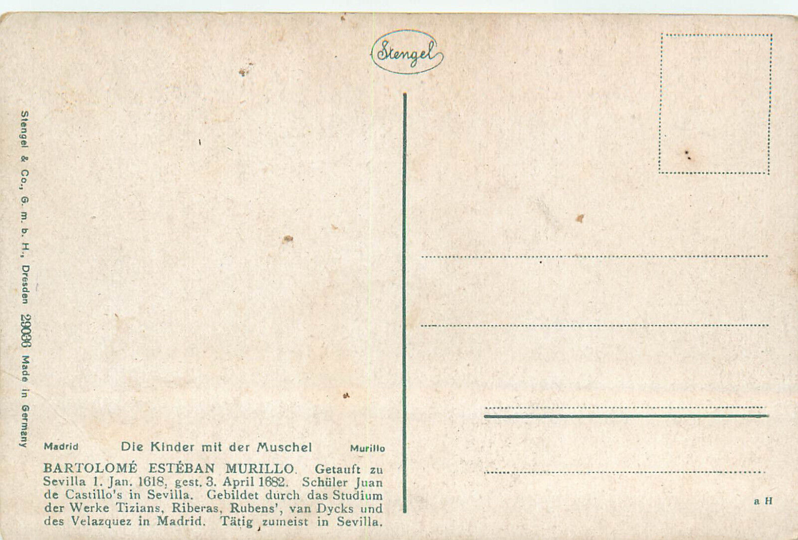 Stengel fine art postcard - Children with the shell - Bartolome Esteban Murillo