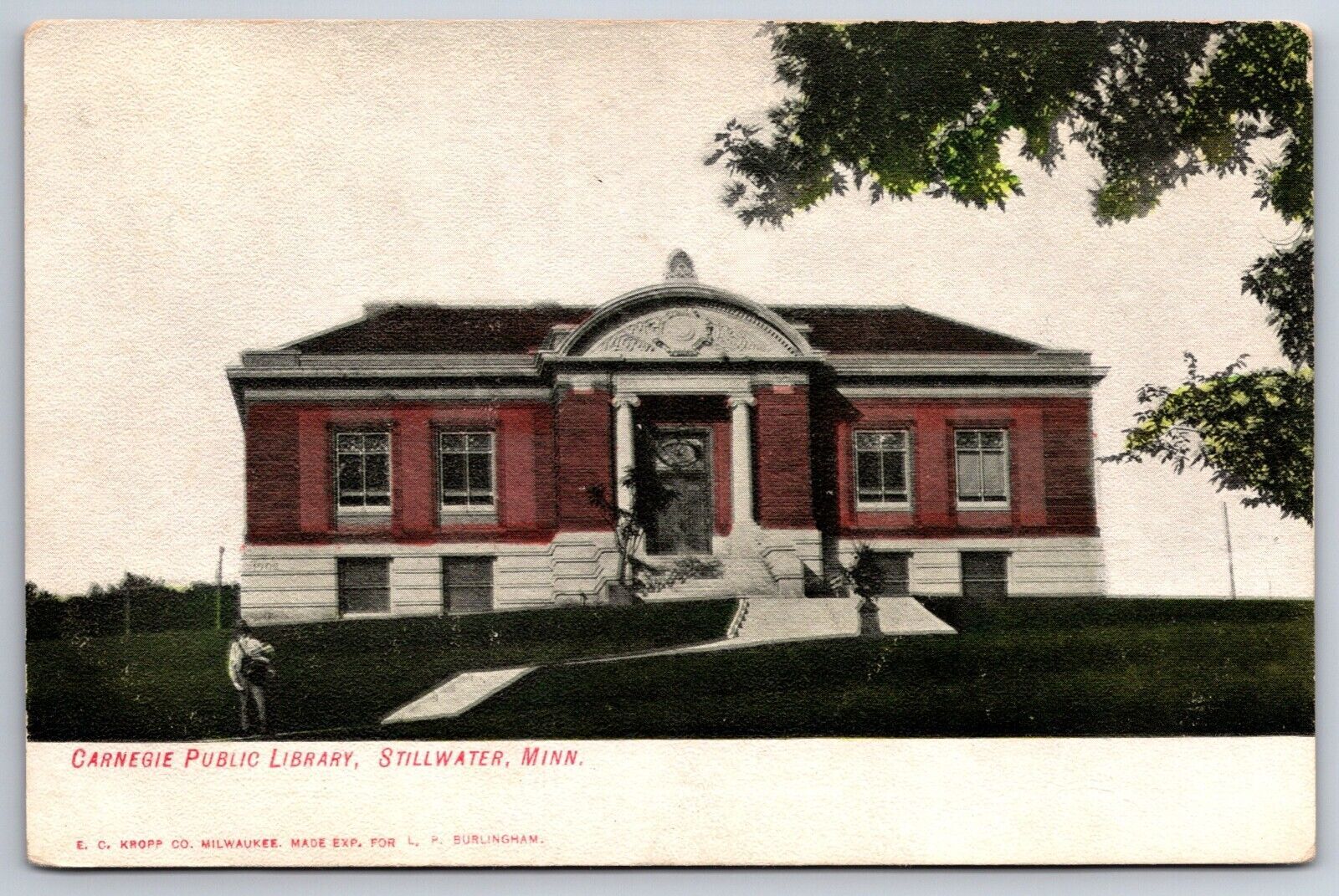 Stillwater Minnesota~Carnegie Public Library~Young Man w/Backpack~c1910 PC