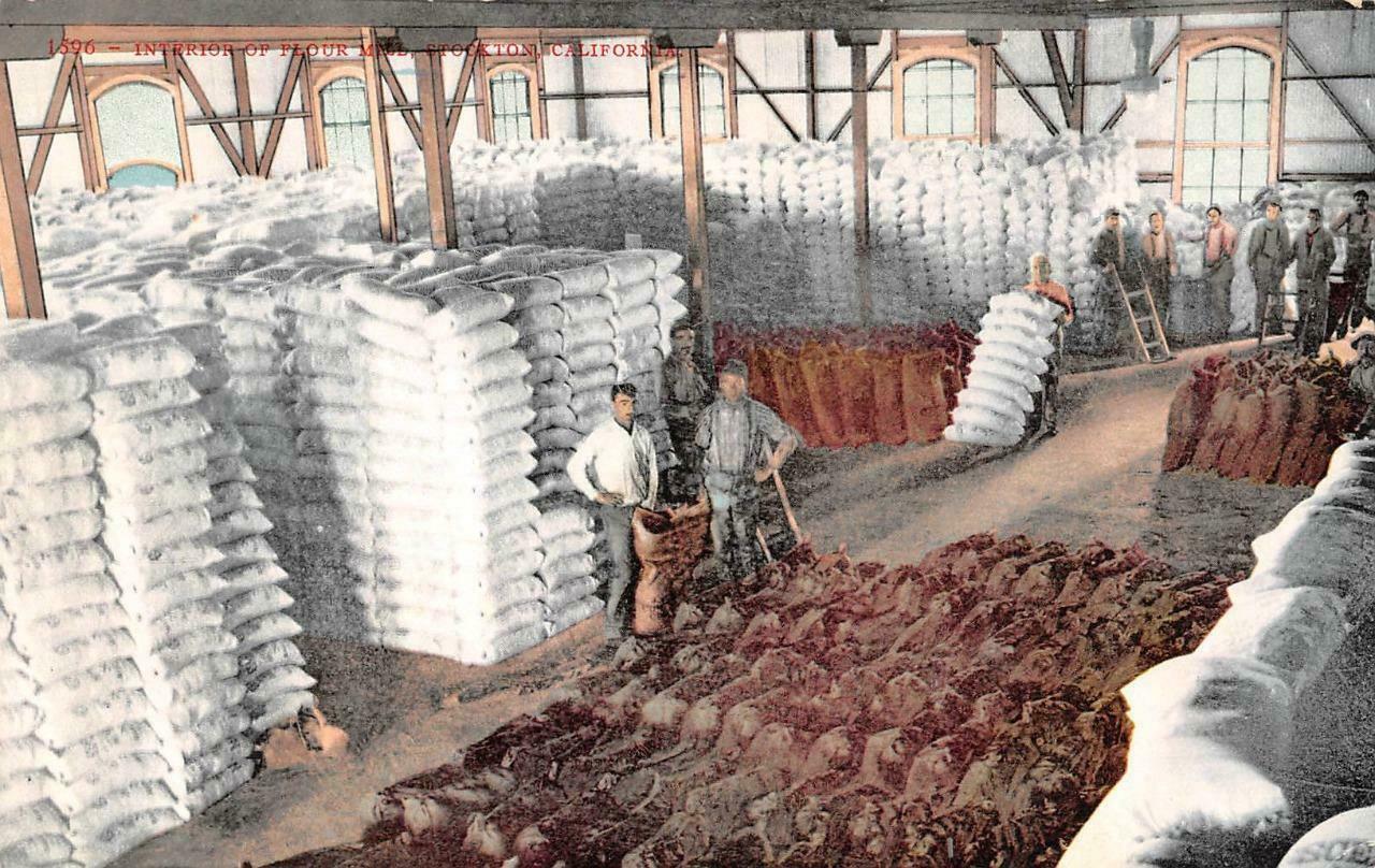 STOCKTON, CA California WORKERS Inside FLOUR MILL c1910's Agriculture Postcard