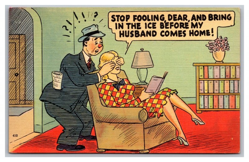 Stop Fooling Dear And Bring In The Ice Before My Husband Comic Postcard