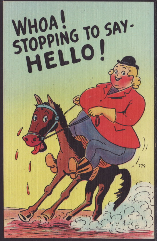 Stopping to Say Hello,Horse,Fat Woman,Comic Postcard
