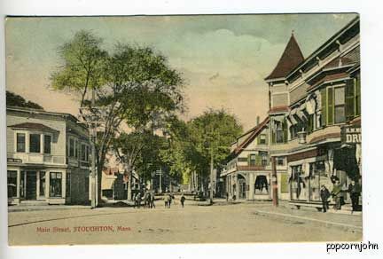 Stoughton MA Street View Drug Store Postcard