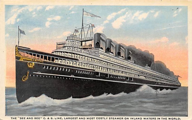 Str SEE AND BEE Largest and most Costly Steamer C & B Line Ship Postcard ,