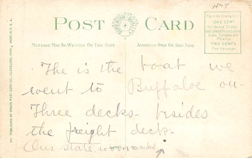 Str SEE AND BEE Largest and most Costly Steamer C & B Line Ship Postcard , Grade: 2 Size: Regular Size Postcard - approximately 3 1/2 inch x 5 1/2 inch (9 CM x 14 CM) Grading Scale: Grade 1 = Perfect corners Gr ... Read More