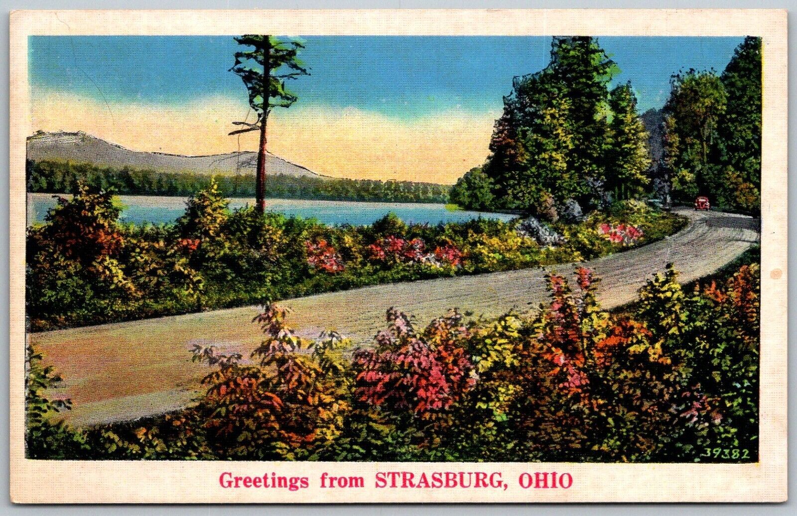 Strasburg Ohio 1920s Greetings Postcard Road Trees