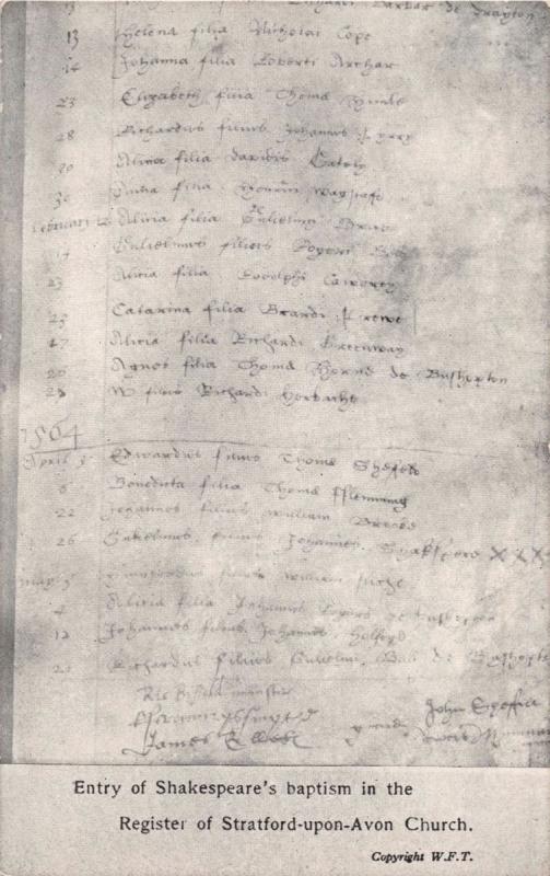 STRATFORD UPON AVON UKENTRY SHAKESPEARES BAPTISM ENTRY ON REGISTER POSTCARD