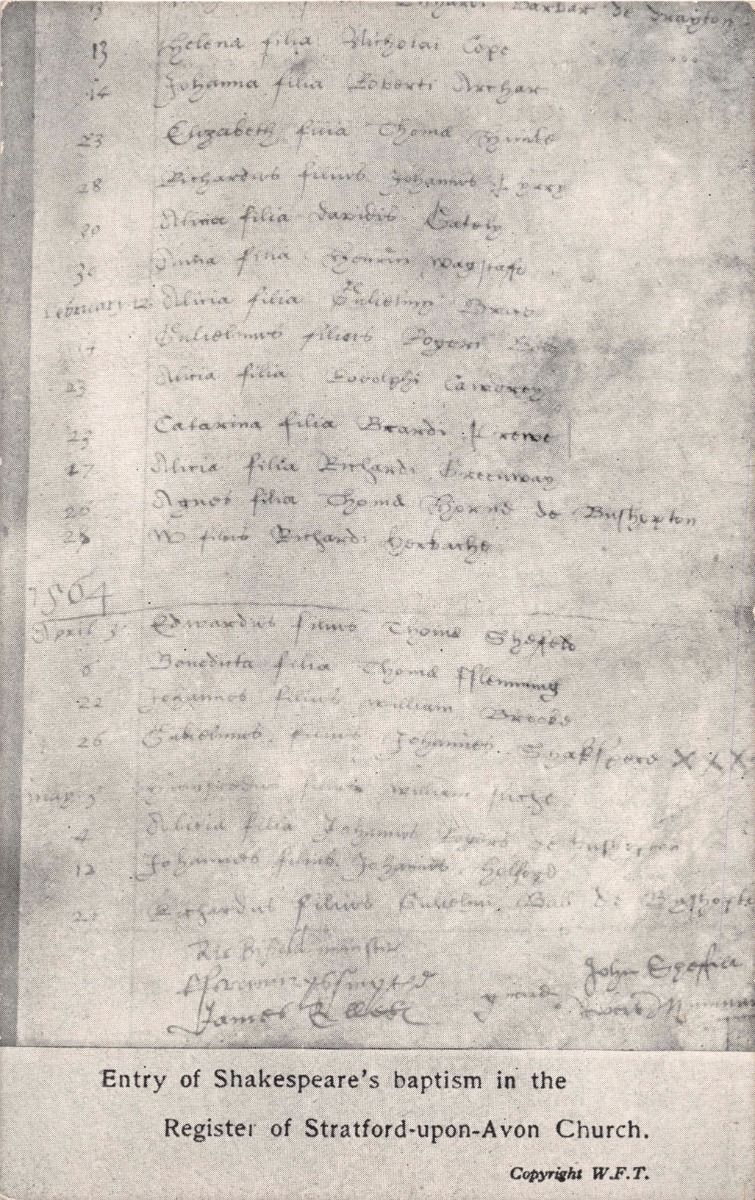 Stratford upon avon ukentry shakespeares baptism entry on register postcard