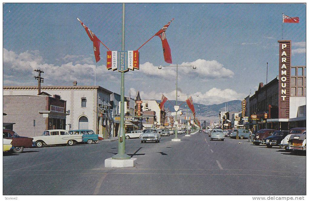 Street View , KELOWNA , B.C. , Canada , 1950-60s :: Postcard , 3.5 by 5.5" , Chrome, EX