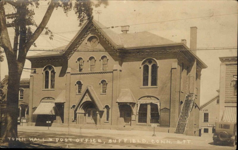 Suffield CT Connecticut Town Hall Post Office c1910 Real Photo Postcard