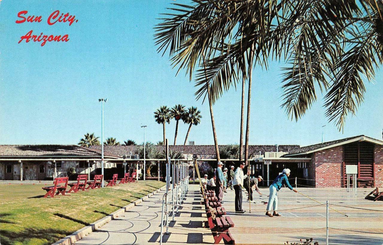 SUN CITY, Arizona AZ RETIREMENT COMMUNITY Club House~Shuffleboard Postcard