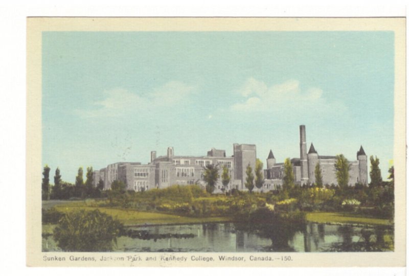Sunken Gardens, Jackson Park, Kennedy College, Windsor Ontario, PECO Postcard