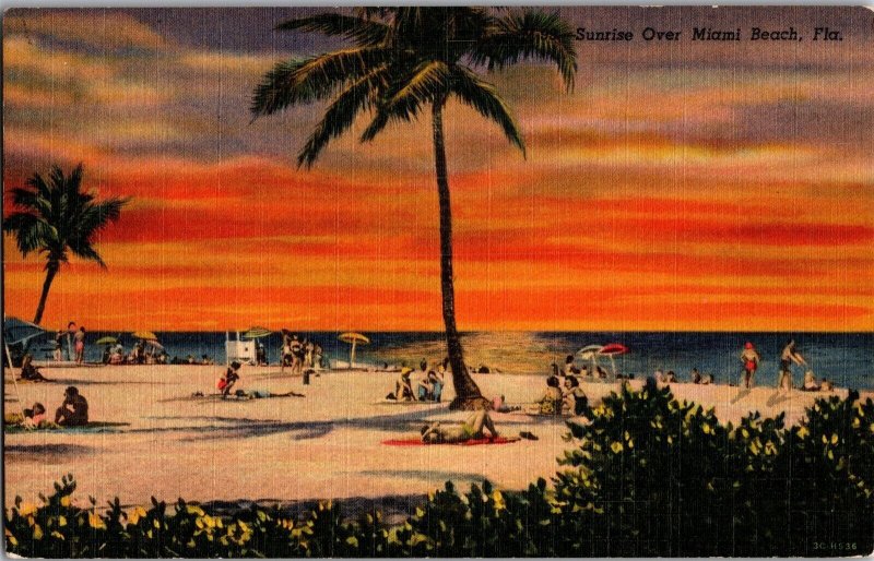 Sunrise Over Miami Beach FL Vintage Postcard J71