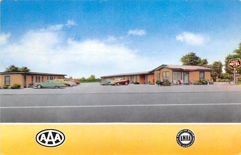 Sunset Motel Postal Date: View Images Grade: 1 Size: Regular Size Postcard - approximately 3 1/2 inch x 5 1/2 inch (9 CM x 14 CM) Grading Scale: Grade 1 = Perfect corners Grade 2 = Very Minimal corner wear, no ... Read More