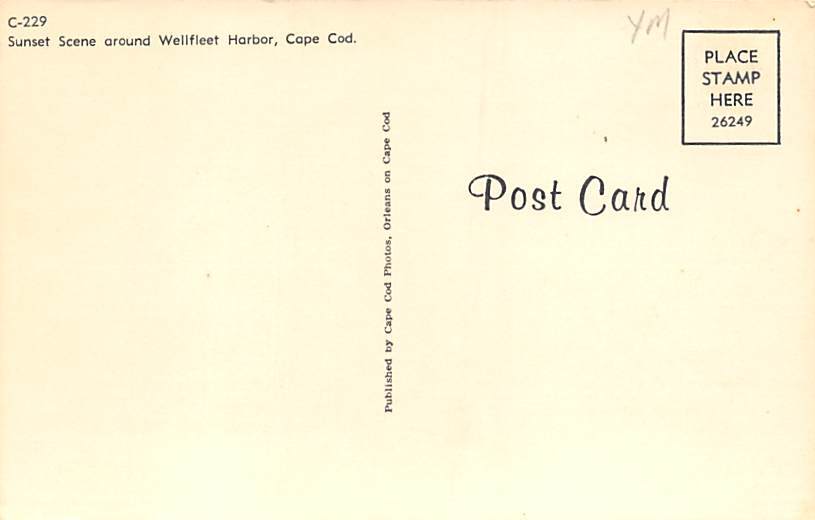 Sunset Scene Cape Cod - Wellfleet, Massachusetts MA Postal Date: View Images Grade: 1 Size: Regular Size Postcard - approximately 3 1/2 inch x 5 1/2 inch (9 CM x 14 CM) Grading Scale: Grade 1 = Perfect corner ... Read More