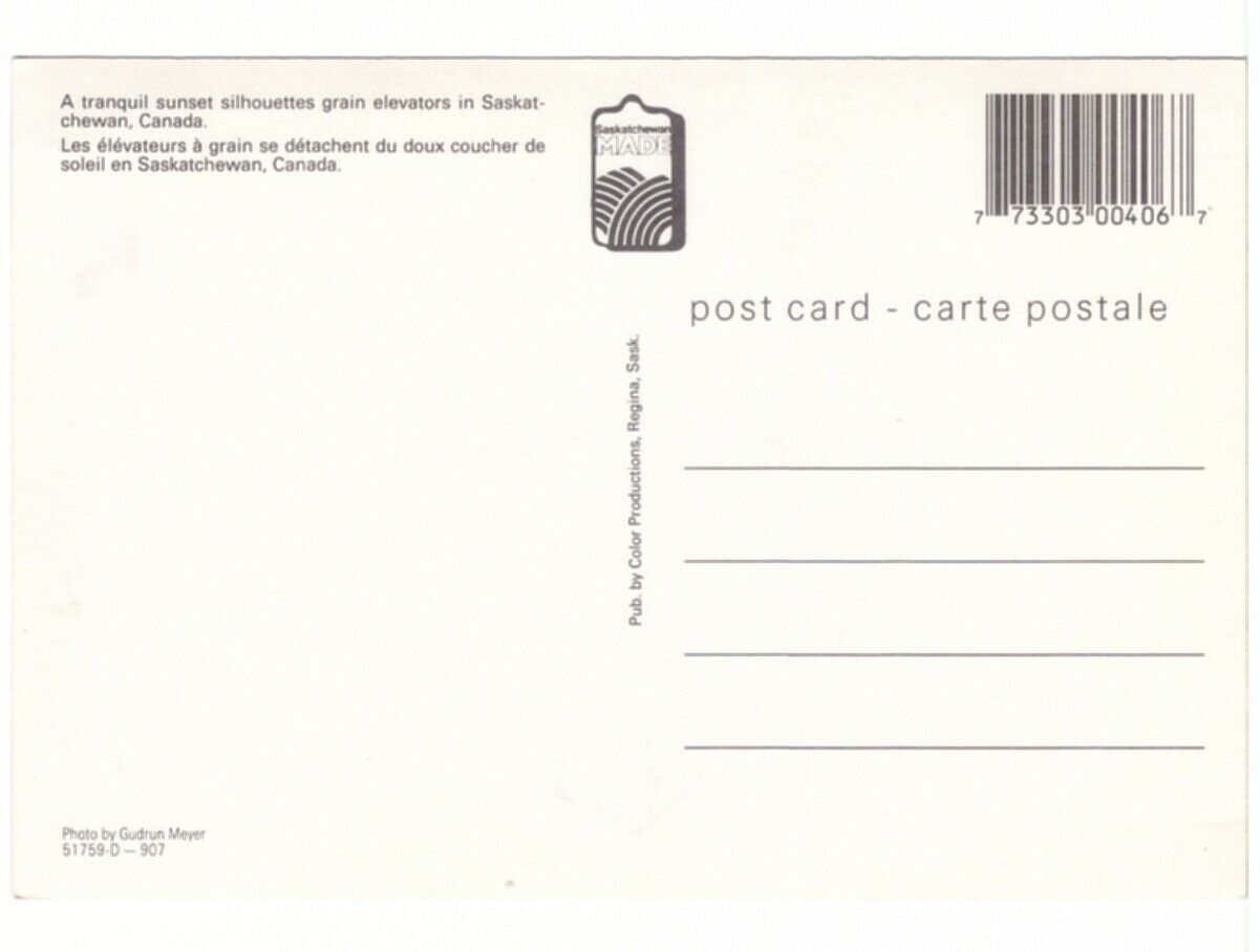 Sunset Silhouettes Grain Elevators, Saskatchewan, Canada, Chrome Postcard