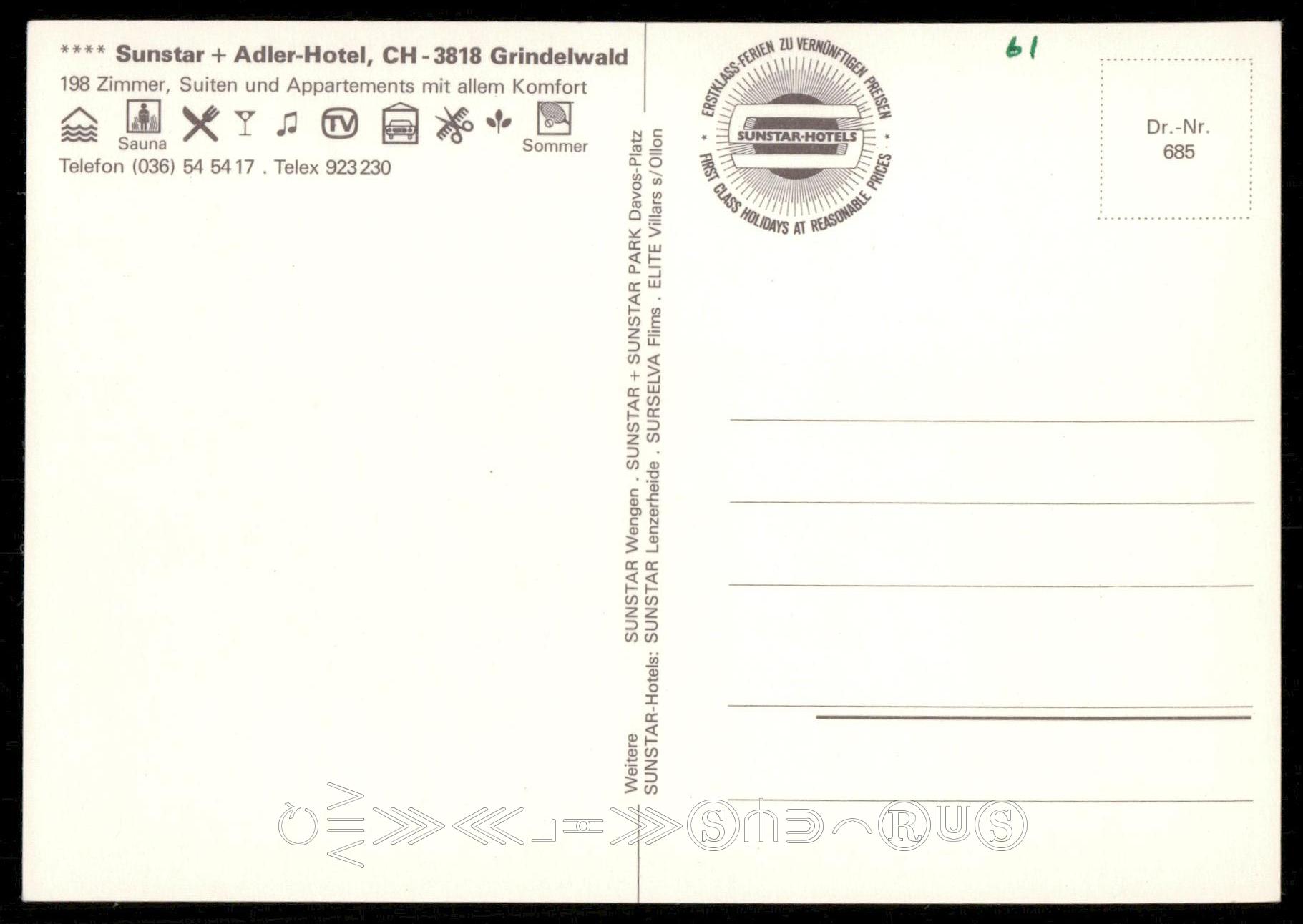 Title: SUNSTAR + ADLER-HOTEL GRINDELWALDCondition: See scans