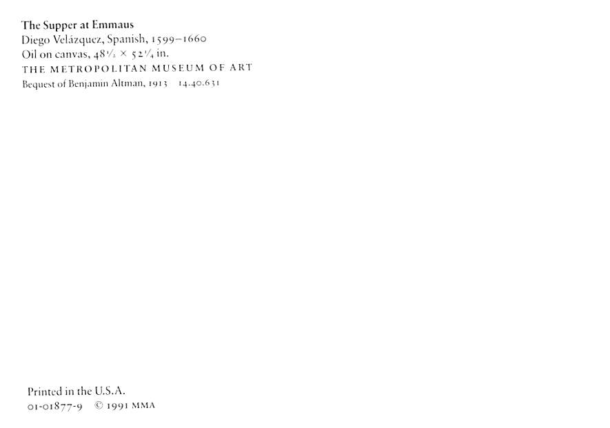 Supper at Emmaus - Diego Velazquez, Spanish Grade: 1 Category: Continental Size Postcard, Approx 4 in x 6 in (10 cm x 15.25 cm) Product Size: Continental size: 4X6 inches (10.5 cm x 15 cm) Grading Scale: Grade ... Read More