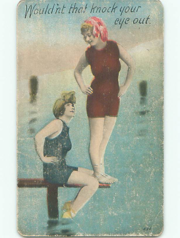Surface Wear Divided-Back risque TWO SEXY GIRLS IN BATHING SUITS o3609