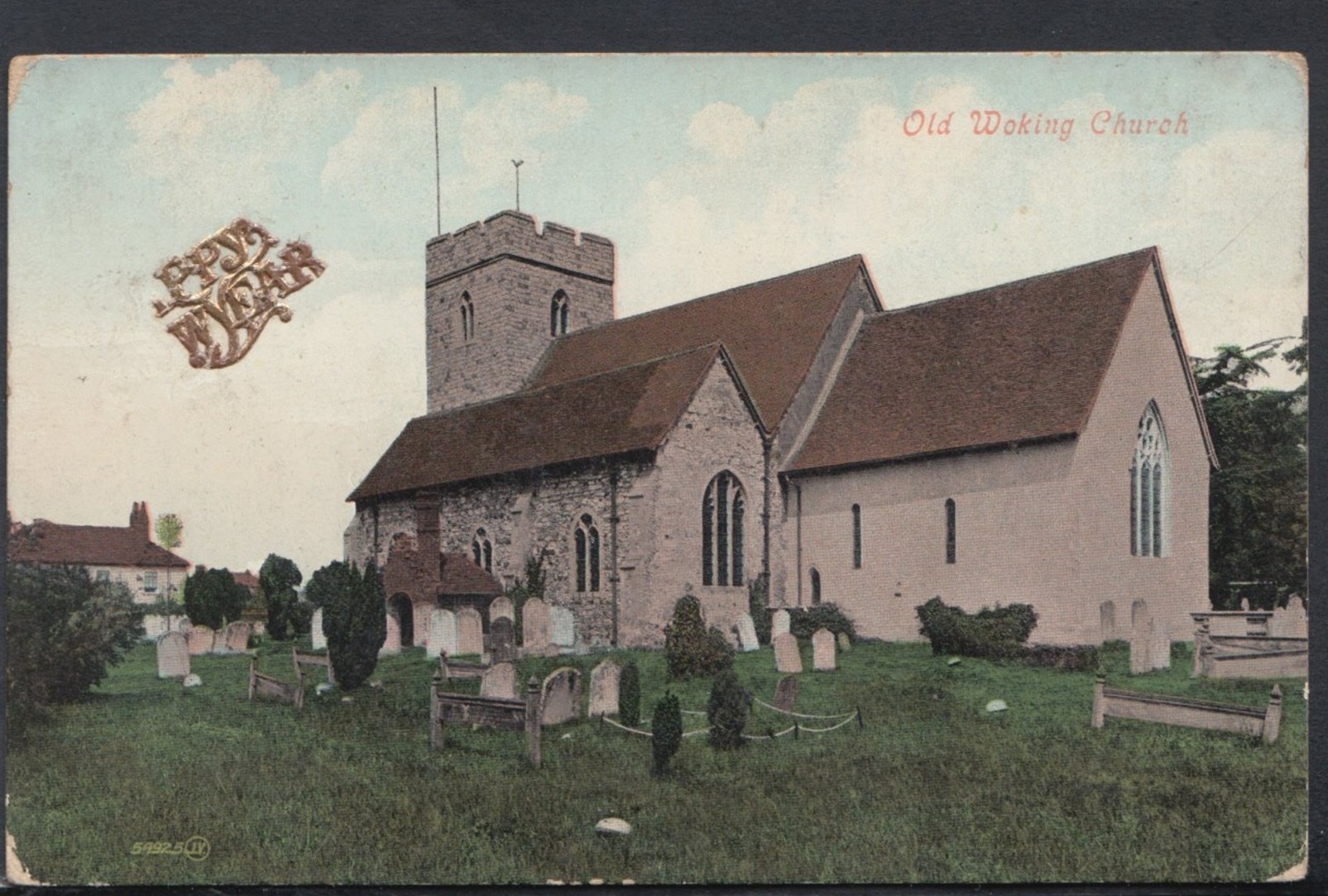 Surrey Postcard - Old Woking Church DC2364 :: Publisher: VALENTINE'S Defect(s) light crease at the centre of the righthand edge Family History Research: MISS BAKER, C/O MRS WRIGHT, HEATHER HOLM, CHOBHAM ... Read More