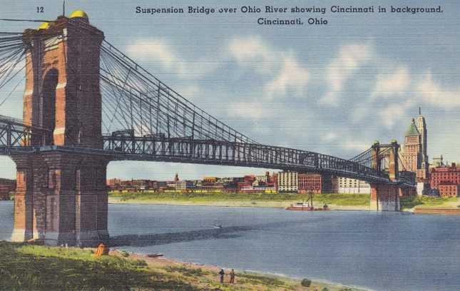 Suspension Bridge over Ohio River Cincinnati, Ohio Linen