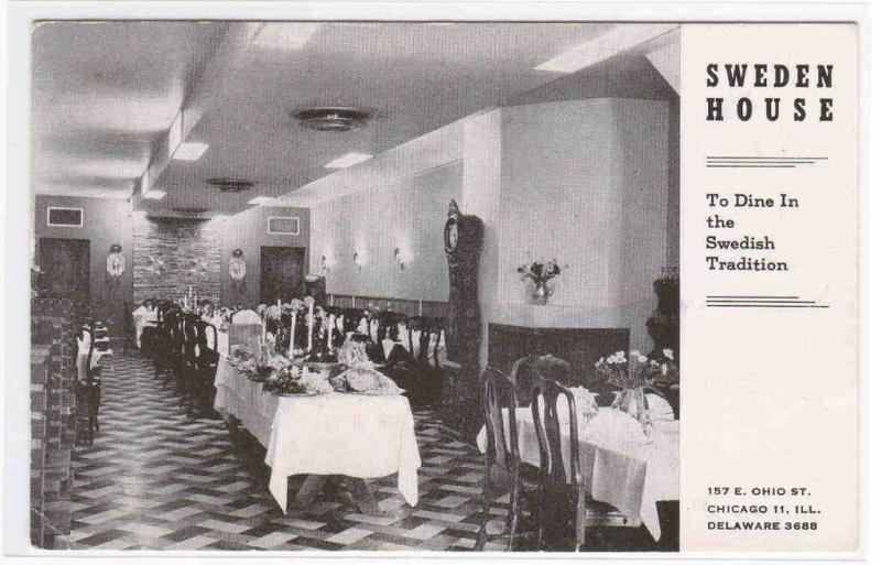 Description: Sweden House Restaurant Interior Chicago IL postcard Type: b&w printed. Circa 1950s Condition: excellent, light corner wear Any hatched effect on pic is scanner effect, not on postcard. Postal use: unused, unposted MORE POSTCARDS IN MY STORE - THE POSTCARD DEPOT Track Page Views WithAuctiva's FREE Counter
