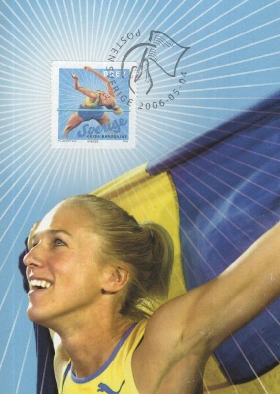bg141 This rare Swedish first day cover from 2006 shows a local high jump hero and a local historian will know more about this souvenir with its special stamp and commemorative hand frank - it is unused and pristine.