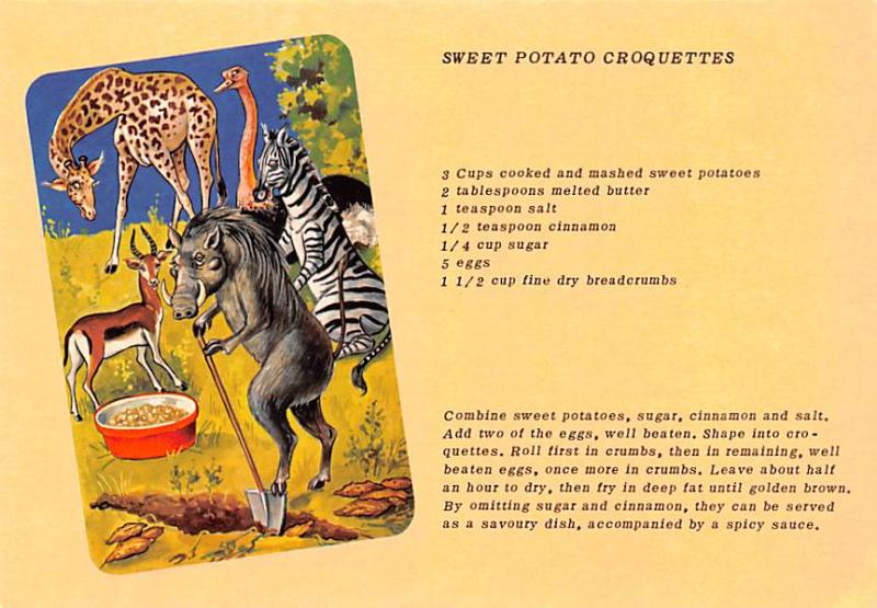 Sweet Potato Croquettes - Recipe Grade: 1 Category: Continental Size Postcard, Approx 4 in x 6 in (10 cm x 15.25 cm) Product Size: Continental size: 4X6 inches (10.5 cm x 15 cm) Grading Scale: Grade 1 = Perfec ... Read More