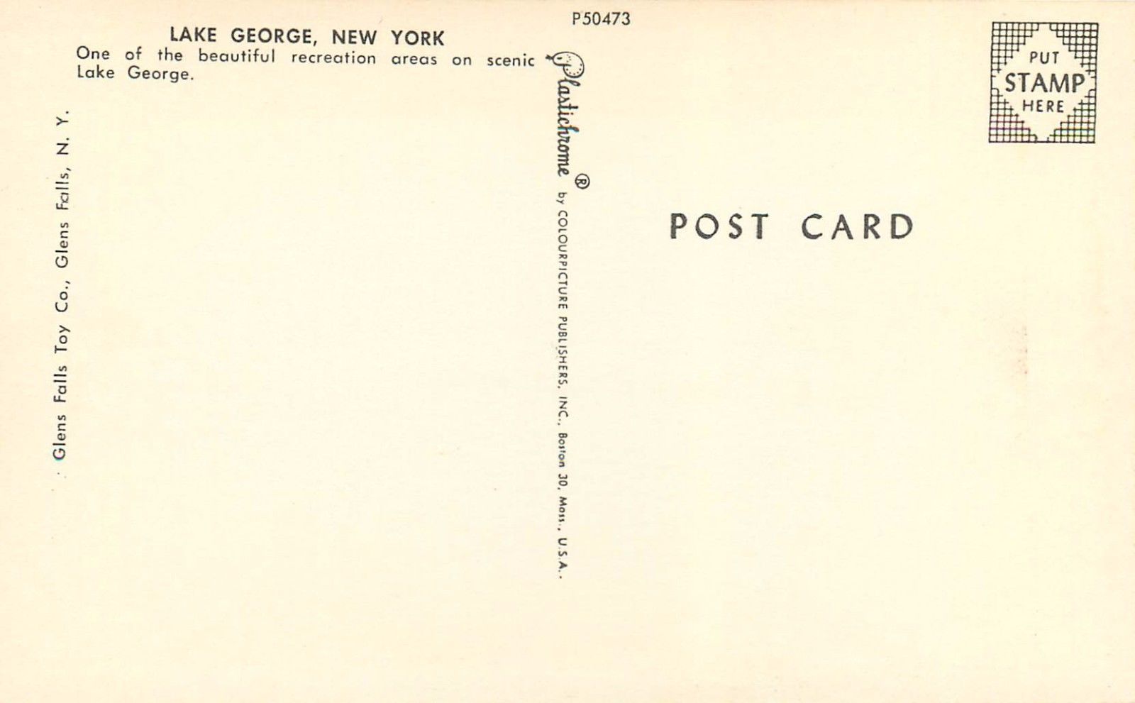 SWIMMING DOCK SUMMER BOATING VACATION SCENE LAKE GEORGE POSTCARD