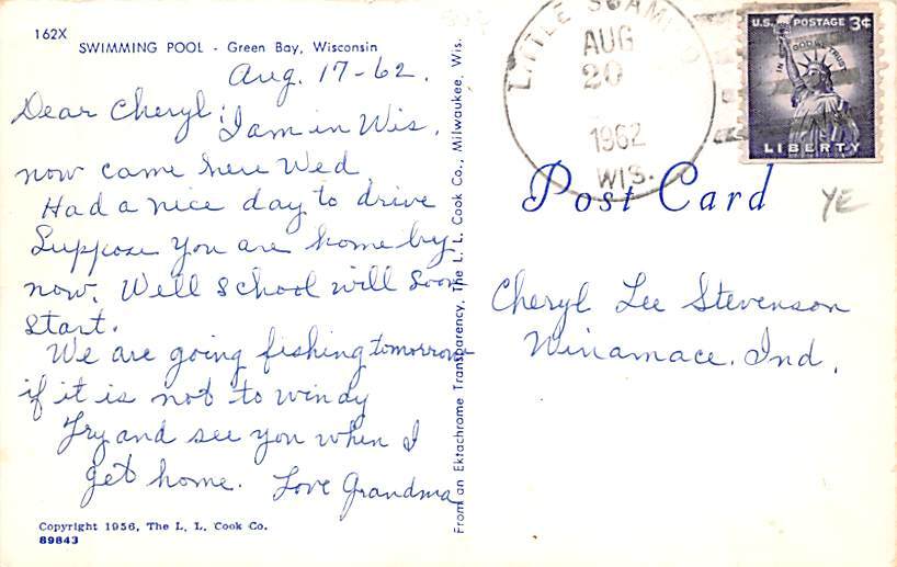 Swimming Pool - Green Bay, Wisconsin WI Postcard - View Images Grade: 1 Size: R - Regular Size Postcard - approximately 3 1/2 inch x 5 1/2 inch (9 CM x 14 CM) Grading Scale: Grade 1 = Perfect corners Grade 2 = ... Read More