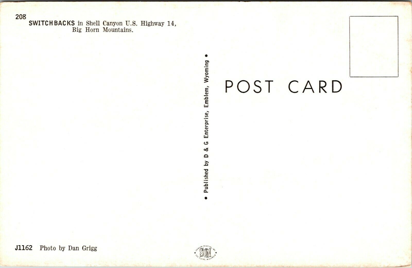 Switchbacks Shell Canyon Big Horn Mountains, Montana Highway 14 postcard
