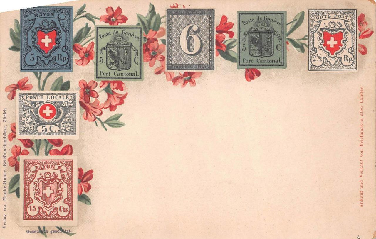 SWITZERLAND CLASSIC STAMPS POSTCARD (c. 1900)