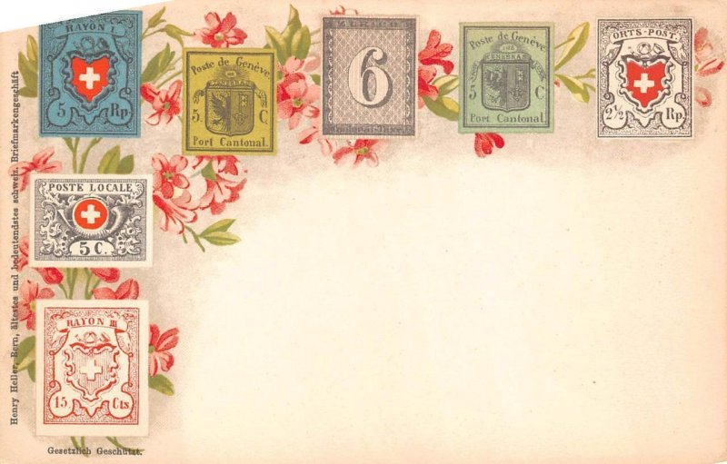 SWITZERLAND CLASSIC STAMPS POSTCARD (c. 1900) ***