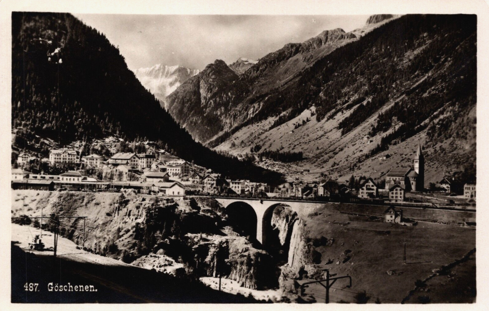 Condition: Look at the pictures for quality. The lines are from the scanner. This vintage postcard features a stunning real photo of Göschenen, Switzerland, taken from a high mountain vantage point. The intricate ... Read More