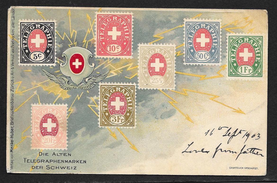 SWITZERLAND Telegraph Stamps on Postcard Used c1903