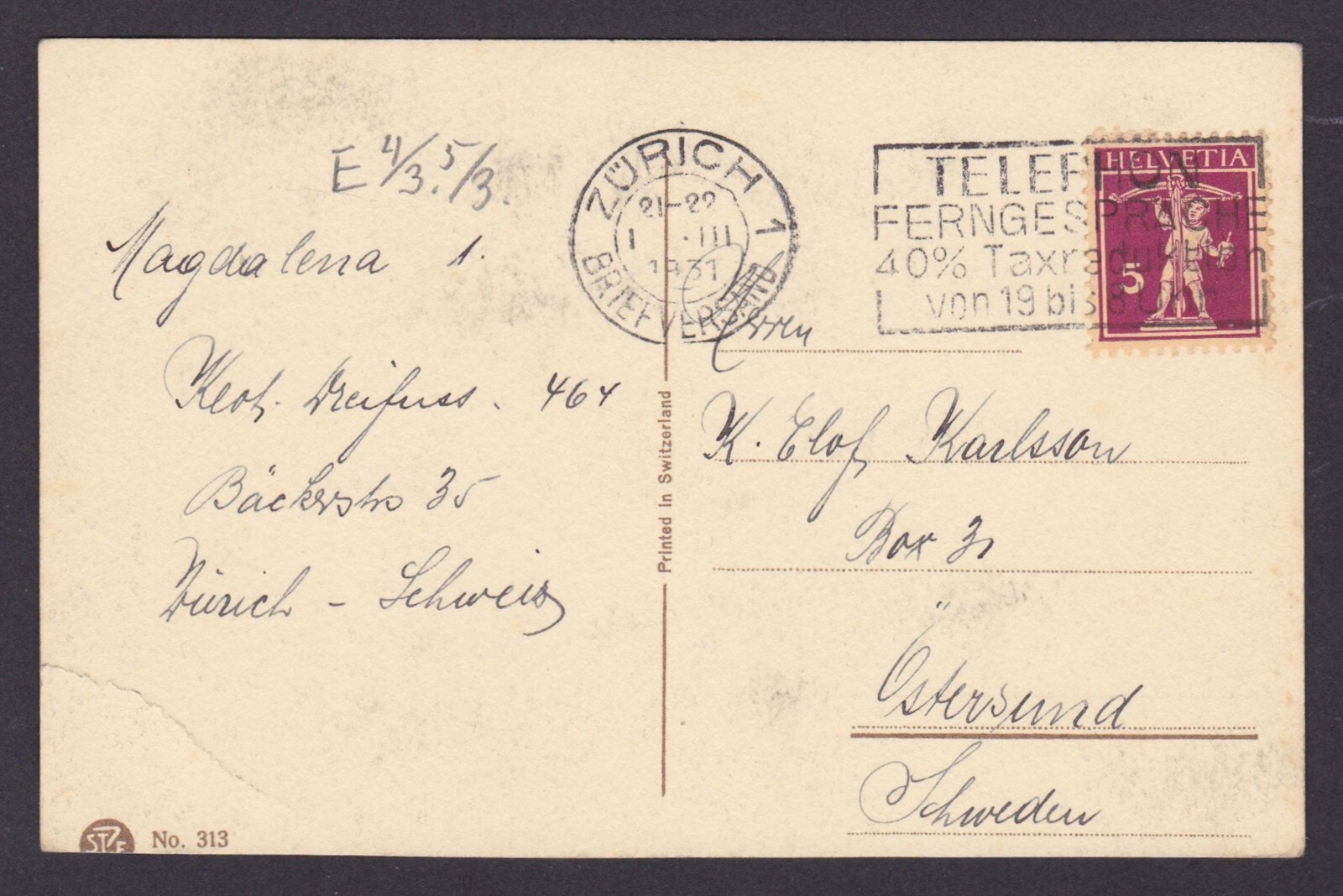SWITZERLAND, Vintge postcard, Nature, Mountains The postcard has a crease. Please, look at the pictures!