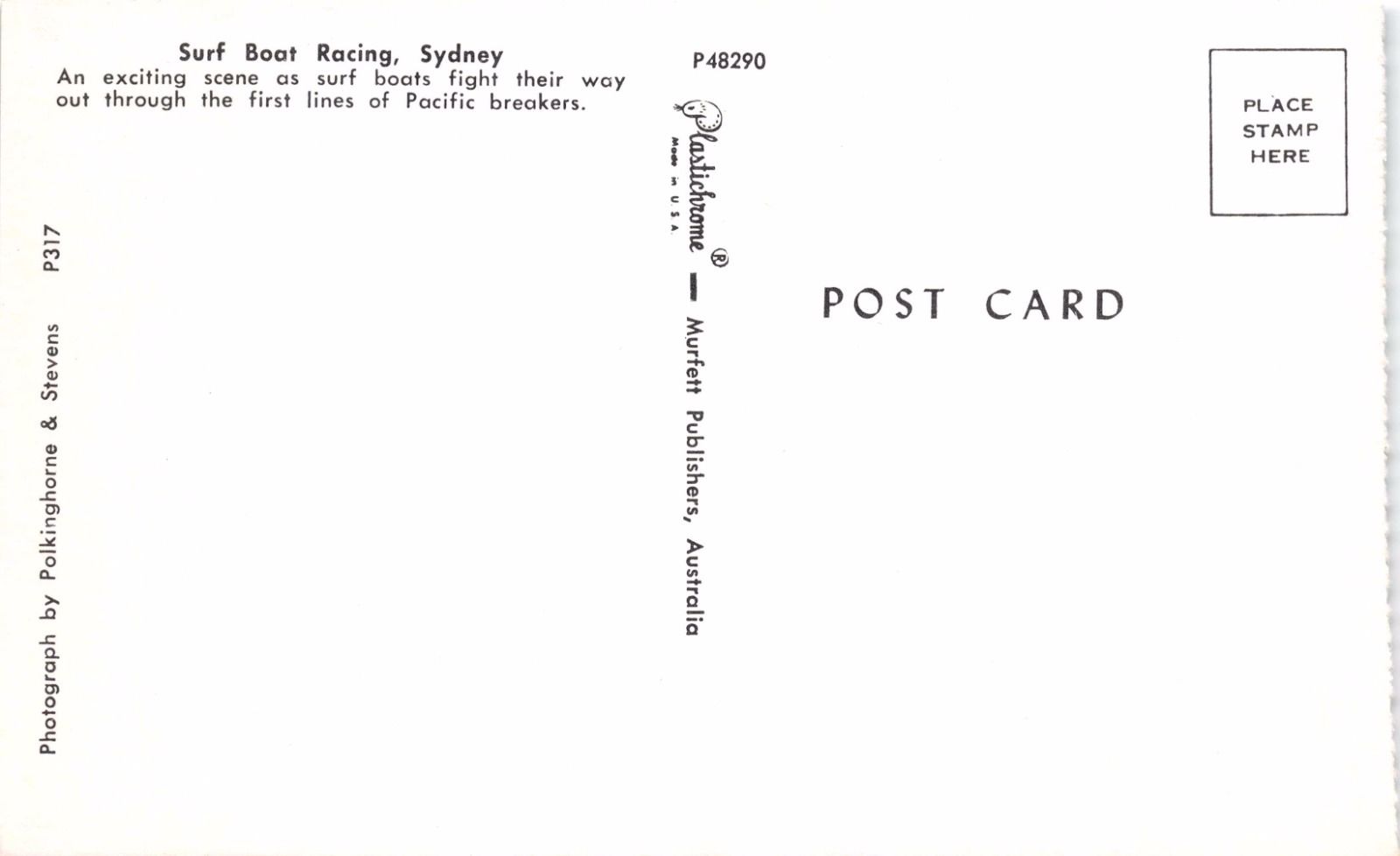 SYDNEY AUSTRALIA SURF BOAT RACING THROUGH PACIFIC OCEAN BREAKERS POSTCARD