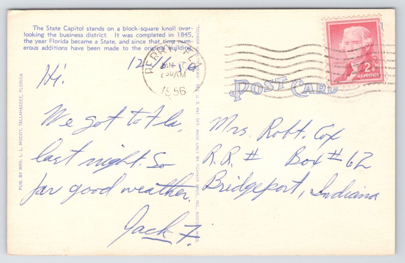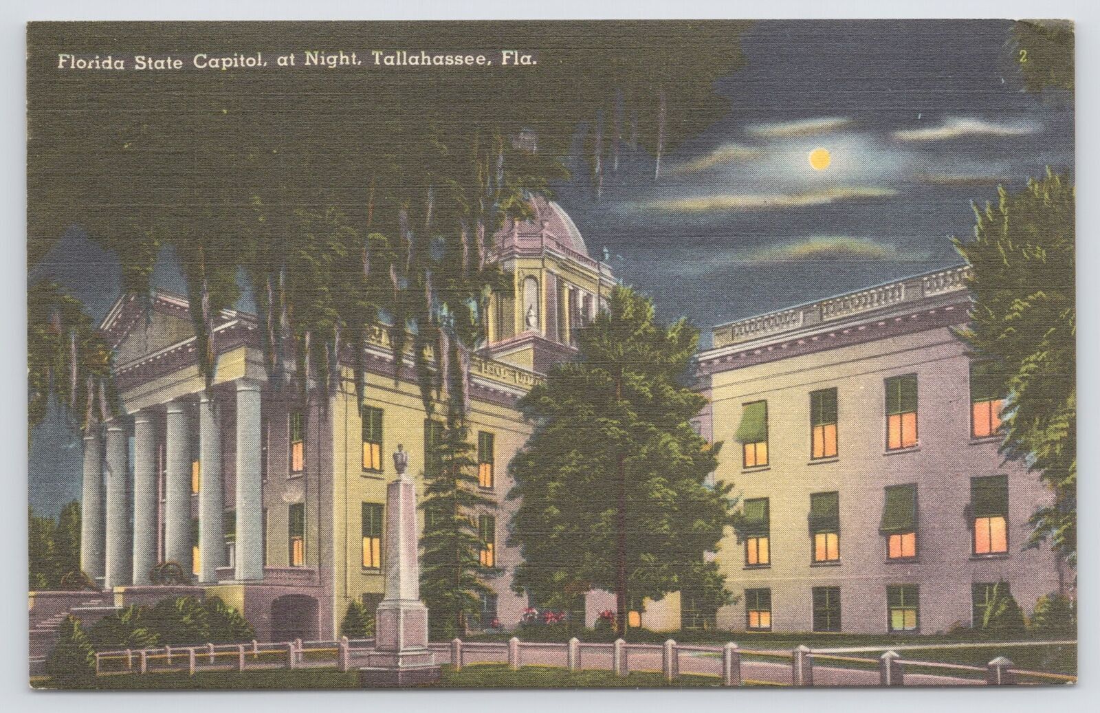 Tallahassee Florida~State Capitol Building @ Night~Linen Postcard
