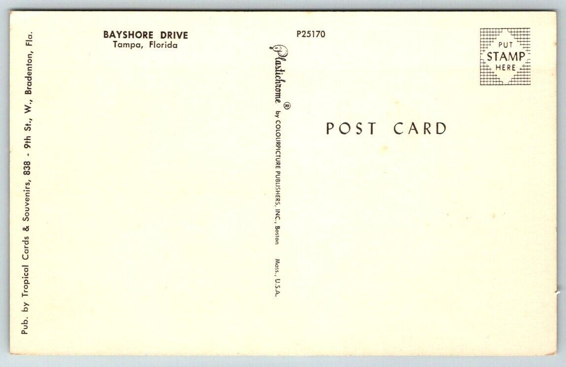 Tampa Florida Bayshore Drive Postcard