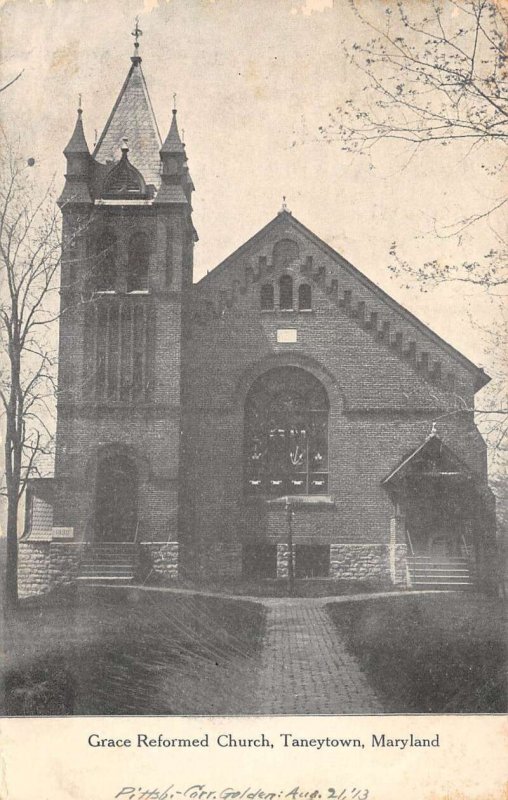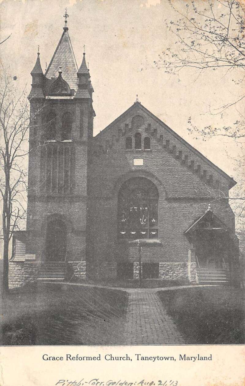 Taneytown Maryland street view of Grace Reformed Church antique pc DD7997
