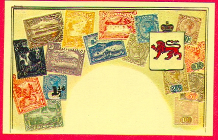 TASMANIA; Philatelic Postcard with Stamps, Crest & Map