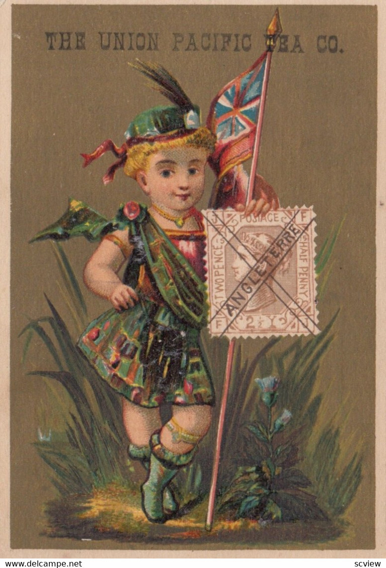 TC ; Union Pacific Tea Co. , 1890s ; Boy & stamp :: Trade Card , Litho