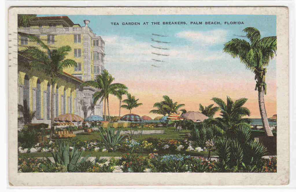 Description: Tea Garden The Breakers Palm Beach Florida 1935 postcard Type: white border Condition: very good, some corner wear Any hatched effect on pic is scanner effect, not on postcard. Postal use: used, posted 1935 MORE POSTCARDS IN MY STORE - THE POSTCARD DEPOT Track Page Views WithAuctiva's FREE Counter