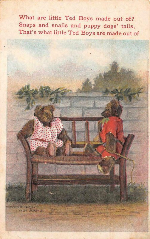TEDDY BEARS SITTING ON BENCH ROMANCE POEM EMBOSSED POSTCARD 1909